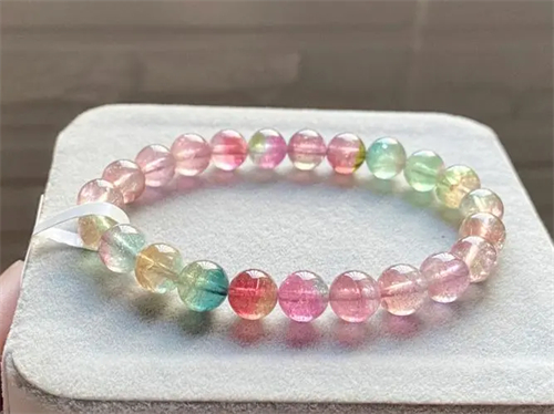 5、对于西瓜碧玺手链而言,价格不光和颜色、通透度有关,还和珠径大小有很大的关系。颜色越艳丽,晶体越通透,珠体直径越大,则价格越高。